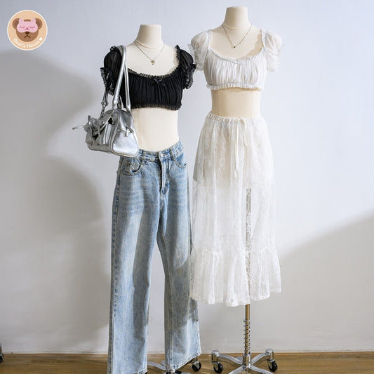 Mabel Crop เสื้อครอปเเขนตุ๊กตา ดีเทลเเต่งริบบิ้น สไตล์สาว เวียดนาม ใส่ออกมาน่ารักมากๆค่ะ