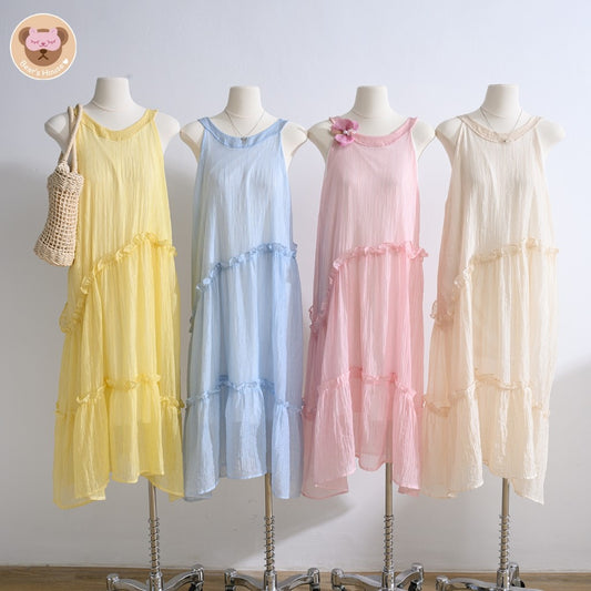 Margarite Dress เดรสยาว ผ้าใยแก้วสีพาลเทส ผูกโบว์ด้านหลัง