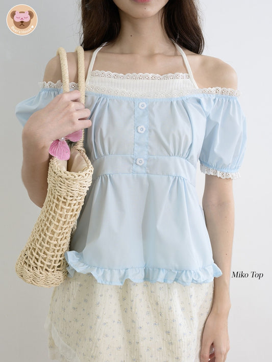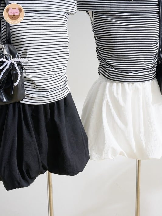 Miko Top เสื้อเเขนตุ๊กตา เย็บผ้า 2 ชิ้นติดกันดีเทลช่วงอกจะเย็บเป็นเสื้อติดกัน เหมือนว่าเราใส่ 2 ชิ้น