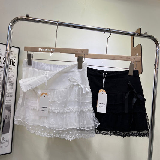Orly Lace Skirt กระโปรงลูกไม้ตาข่าย เเต่งริบบิ้น🎀 งานป้าย