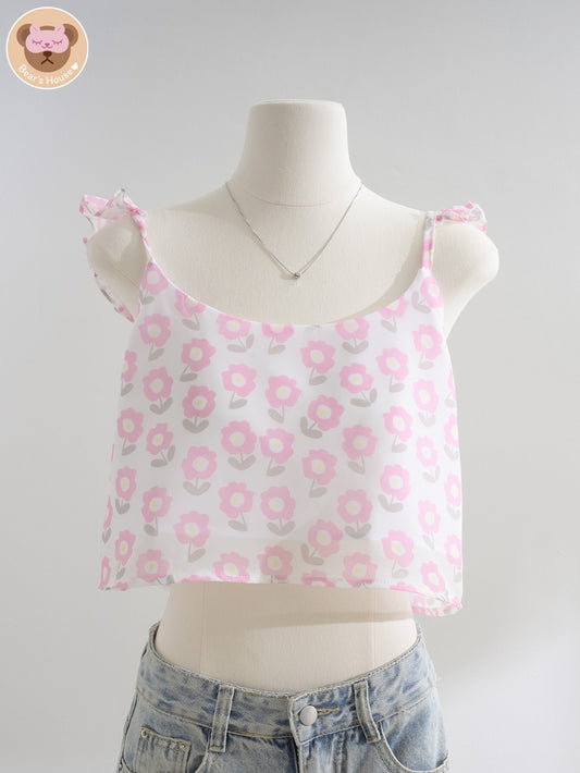 Pinky Pastel cami เสื้อสายเดี่ยวระบายอก ลายดอกไม้ ใส่ได้ 3 สไตล์😍