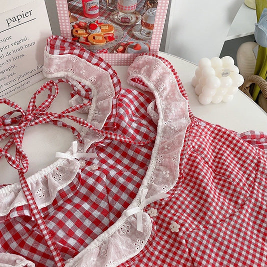 X’ mas Crop สายเดี่ยวสก็อตเเดง เเต่งแขนระบาย🎄