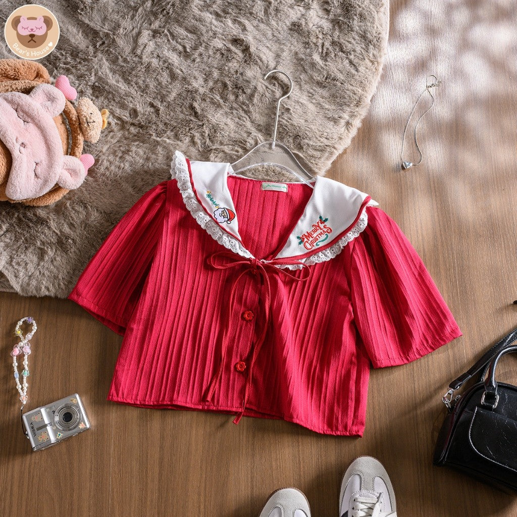 Kala Christmas Crop เสื้อครอปปัก ลาย 🎅น่ารัก เเต่งลูกไม้ช่วงคอ