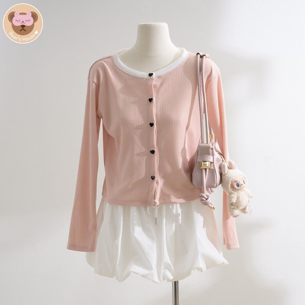 Oria Heart เสื้อคลุมเเขนกระยาว ผ้าร่อง เเต่งกระดุมหัวใจ❤️