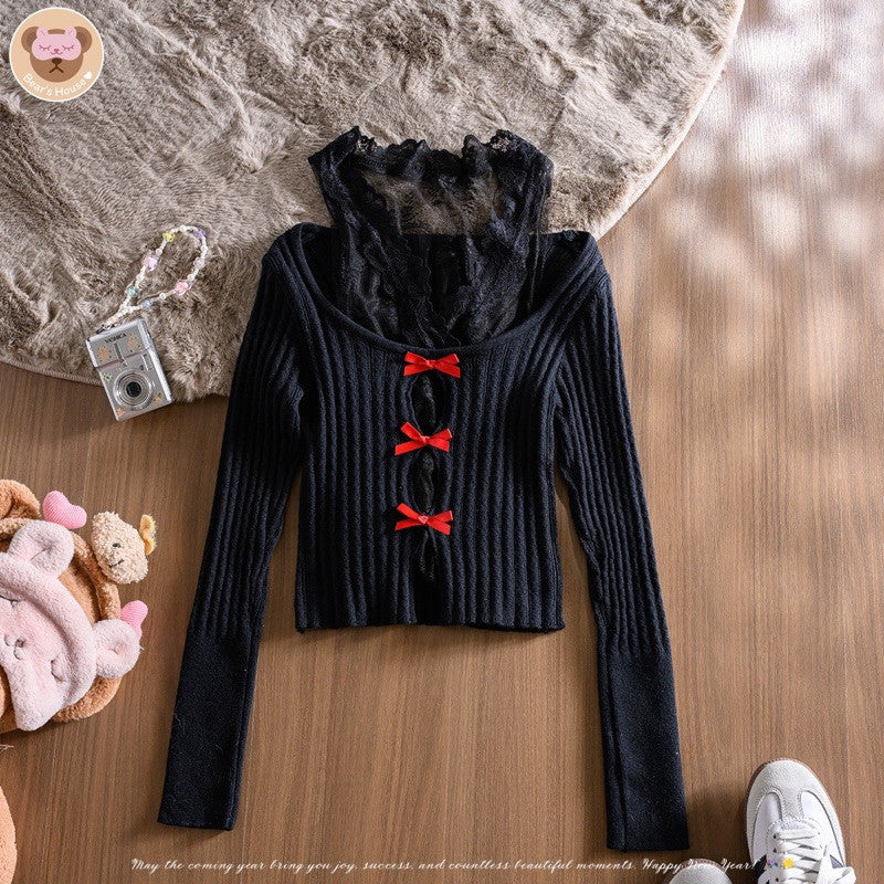 Penny Lace Set เซ็ท 2 ชิ้น เสื้อเเขนกุดลูกไม้ พร้อมกับเสื้อไหมพรมเเขนยาว งานป้าย